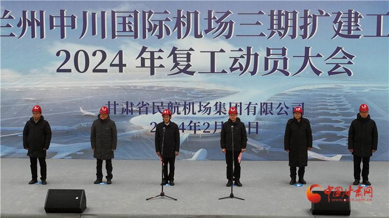 中國甘肅網(wǎng)2月26日訊(西北角·中國甘肅網(wǎng)記者 宋芳科 通訊員 王生朝)2月25日,甘肅省民航機場集團在蘭州中川國際機場三期擴建工程建設(shè)現(xiàn)場召開2024年復(fù)工動員大會,全體參建單位和廣大建設(shè)者聚焦沖刺7月底全面竣工、年底轉(zhuǎn)場投運目標(biāo)任務(wù),迅速掀起大干快上熱潮,全面推進復(fù)工復(fù)產(chǎn),以起步就是沖刺、開局就是決戰(zhàn)的干勁全力跑出項目建設(shè)“加速度”。